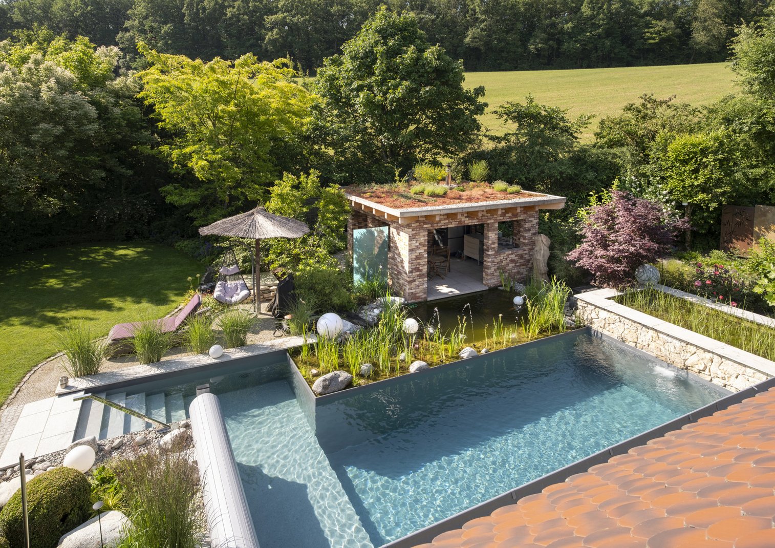 Freuen Sie sich auf frische Ideen rund um natürliches Badevergnügen in Ihrem eigenen Garten: Biopools samt Gegenstromanlage von Binder, Minipools, klassische Pools, Whirlpools, die „grüne“ BlumhoT Outdoorsauna und vieles mehr.